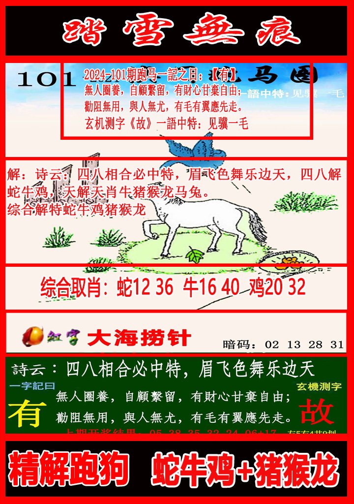 2026-102期正版彩图挂:02;挂牌:乌焉成马;六肖:蛇龙猪虎狗猴;火烧:鸡